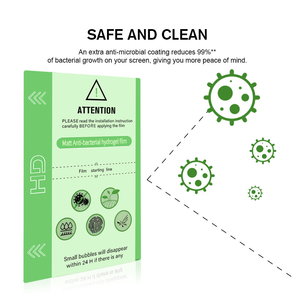 Schütze dein Display – und deine Gesundheit: Unsere antibakterielle Hydrogel Displayschutzfolie kombiniert zuverlässigen TPU-Displayschutz mit einer speziellen antimikrobiellen Beschichtung. Ideal für Smartphones, Tablets und alle Geräte mit Touchdisplay – besonders im Gesundheitsbereich, in Büros und bei Vielnutzung.